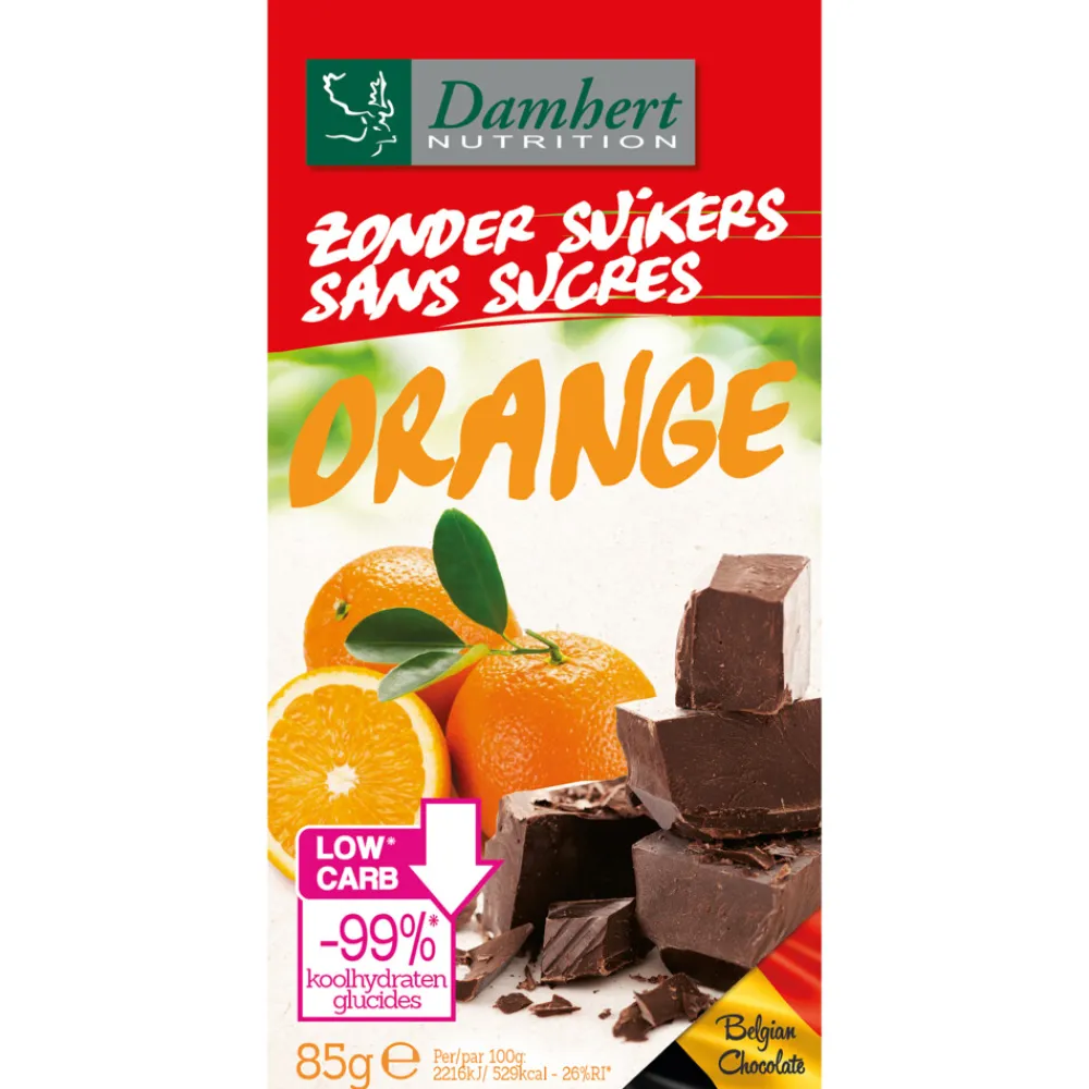 Damhert Chocoladetablet Orange Zonder Suikers heeft de lekkere combinatie van sinaas en chocolade. Zonder suikers, 99% minder koolhydraten en ketoproof.