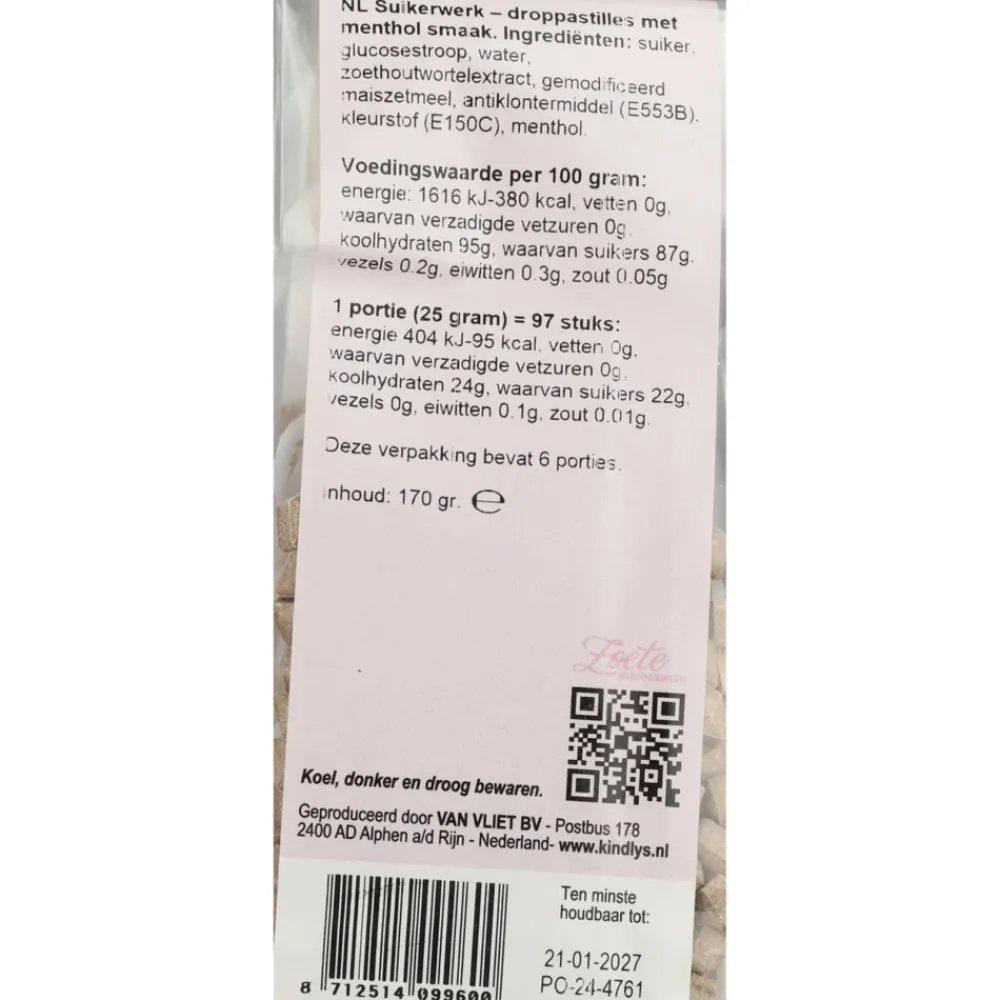 Kindly Pectorale zijn klassieke ruitjes van drop en menthol, met een subtiele salmiaksmaak. Deze traditionele lekkernij biedt de perfecte balans tussen verfrissende menthol en de diepte van salmiak.