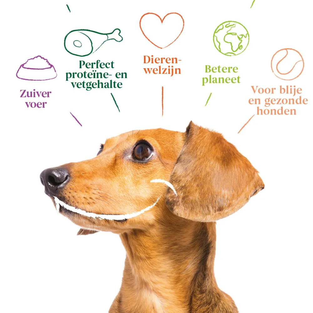 Geen hond is hetzelfde. Daarom vind je op de verpakking de aanbevolen dagelijkse hoeveelheid biologische paté met kip, gebaseerd op het gewicht van je hond.