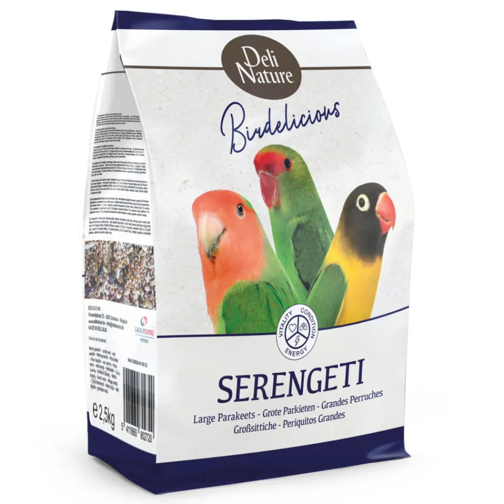 5 Sterren Menu voor Afrikaanse Parkieten van Deli Nature is een complete mengeling voor Afrikaanse Parkieten, verrijkt met geextrudeerde pellets voor extra vitaminen en mineralen. Grit voor een optimale werking van het verteringssysteem. Bevat stukjes fruit en wilde zaden. Verkrijgbaar in 800 gr en 2,5 kg.