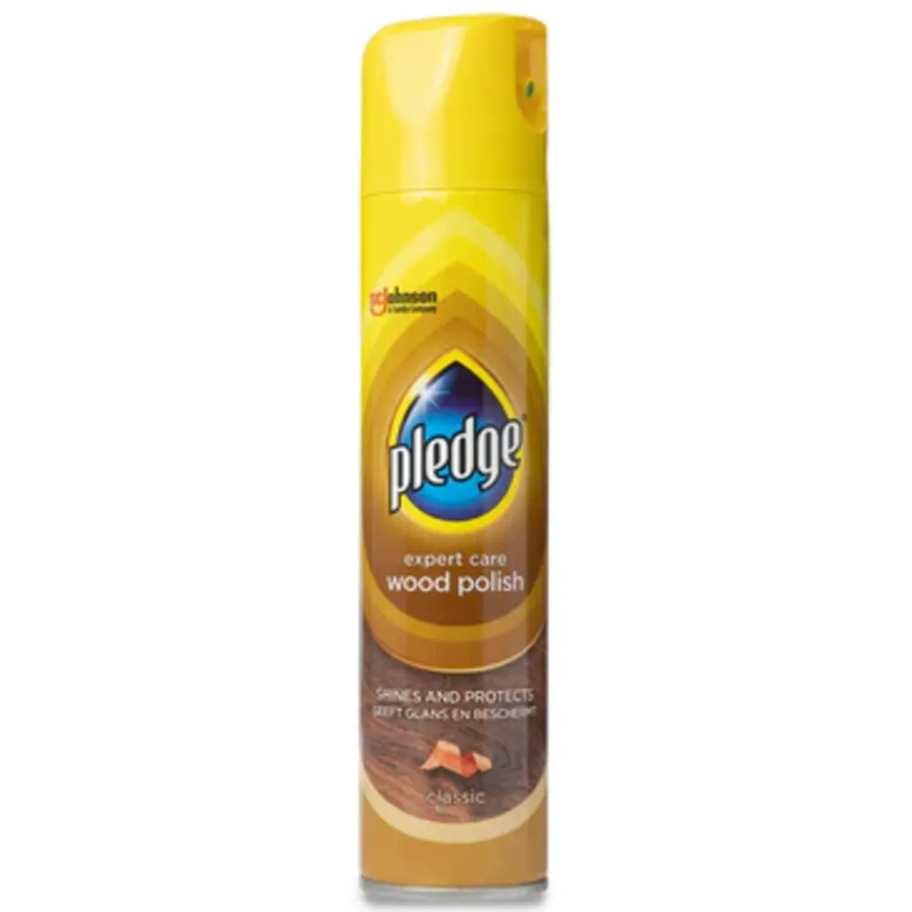 De spuitbussen van Pledge hebben een speciale samenstelling van lichte wassen en reinigende conditioners die gemakkelijk stof en vuil verwijderen. Door de spray te gebruiken bescherm je jouw houten meubels tegen alledaagse vlekken die ontstaan door bijvoorbeeld knoeien. Naast vlekken verwijderen voorziet de spray de meubels van een natuurlijke glans.