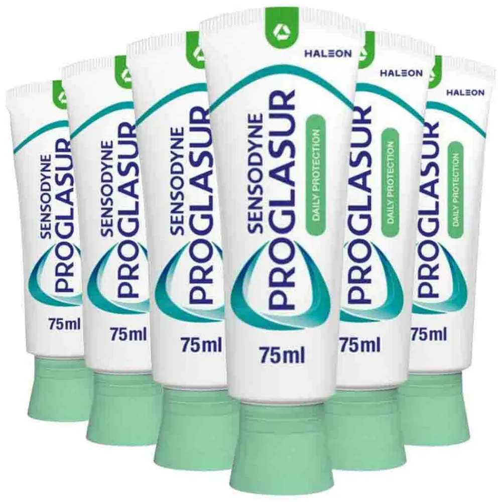 Sensodyne ProGlasur Tandpasta Daily Protection met een unieke, geoptimaliseerde fluoride-formule, versterkt en verhard de tanden door verzwakt glazuur opnieuw te mineraliseren en diep in de tand door te dringen*. Bij tweemaal daags poetsen helpt Sensodyne Proglasur Daily Protection dagelijkse tandpasta:
