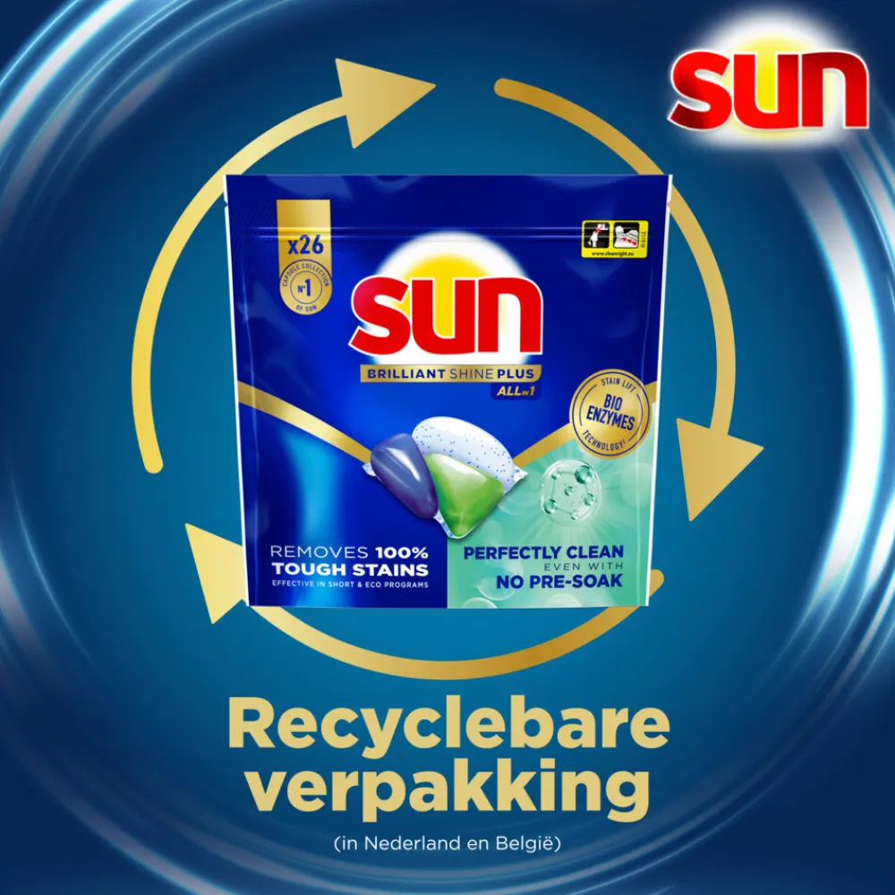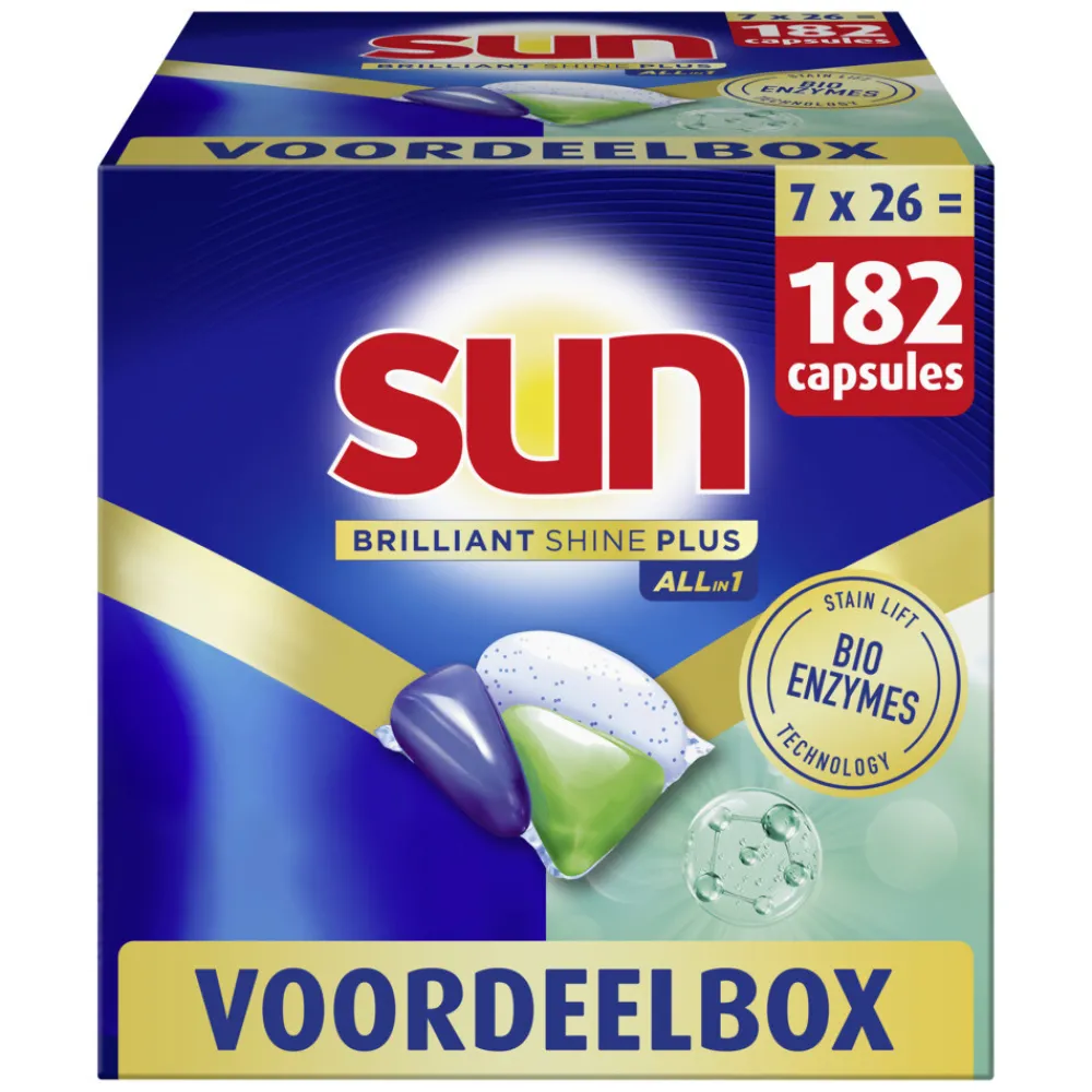 - Sun Brilliant Shine Plus All-in 1 Vaatwascapsules met bio-enzymen