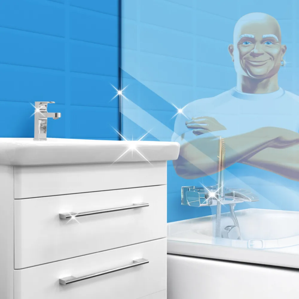 Met hardnekkige zeepresten in de wastafel, douchecabine en badkamer, kan het lastig zijn om de badkamer schoon te maken… en schoon te houden. Daarom combineert Mr. Propre badkamerreiniger de reinigingskracht van Mr. Propre met frisheid van Febreze om je badkamer snel een langdurige glans en een prettige frisheid te geven. Met zijn antikalkaanslagkracht verwijdert Mr. Propre Badkamerspray tot 100% van zeepresten en kalkaanslag. Daarnaast beschermt de glansformule tegen watervlekken en nieuwe zeepresten, zodat je badkamer langer sprankelend schoon blijft. Deze badkamerreiniger kan zonder zorgen dagelijks worden gebruikt op alle oppervlakken in de badkamer: badkuipen, linoleum, douchecabines, wastafels, toilet, tegels en kranen. Simpelweg de handige spray op het vuile oppervlak sprayen tot het volledig bedekt is. Dan afspoelen of -vegen met een vochtige doek.