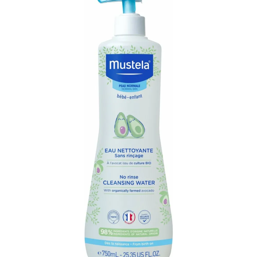 Mustela No-Rinse Cleansing Water reinigt op milde wijze de huid van pasgeborene, baby’s en kinderen zonder na te spoelen en is speciaal geformuleerd voor gebruik vanaf de geboorte. Alle onzuiverheden van het gezicht en het zitvlak van je baby worden effectief gereinigd en laten de babyhuid zijdezacht en verzorgd achter. De milde formule is verrijkt met aloë vera extract, allantoïne en Avocado perseose®, een gepatenteerd ingrediënt dat bijdraagt aan het versterken en behouden van de natuurlijke huidbarrière. Mustela Reinigend Water is tevens hypoallergeen, vrij van parabenen en ftalaten en geschikt voor pasgeborene, baby’s en kinderen en kan zowel voor het gezicht als lichaam worden gebruikt.