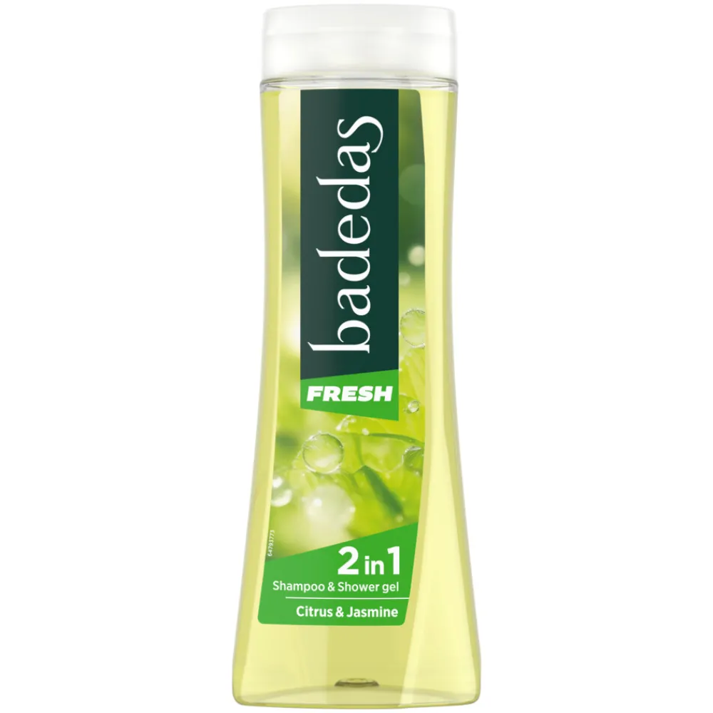 Badedas Fresh – 2in1 shampoo & douchegel. Douchegel Champoo & Douchegel Citrus-en jasmijngeur. Vereenvoudig je routine met onze 2-in-1 Douchegel & Shampoo, met een vegan-gecertificeerde geur.