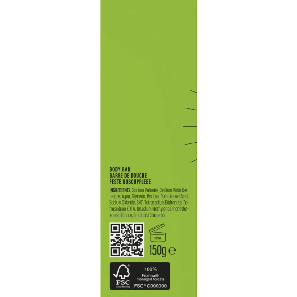 Naast dat je met deze producten plastic uitspaart, gaan ze ook nog eens langer mee. De shower bar gaat net zo lang mee als 3 flessen shower gel. De zeep is gemakkelijk mee op reis te nemen. De shower bar bevat plantaardige glycerine voor hydratatie en zachtheid. Dit product is sulfaatvrij, minstens 97% biologisch afbreekbaar, 100% vegan en 100% plasticvrij.