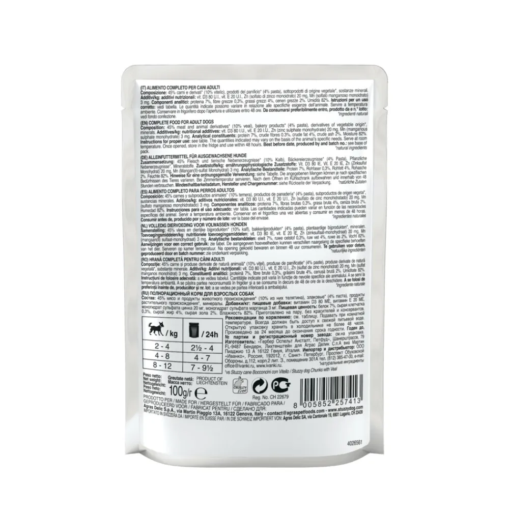 Stuzzy reepjes met kalfsvlees en pasta voor honden is hartig, voedzaam en… trendy! Natuurlijke ingrediënten langzaam gegaard tot een complete maaltijd. Een feest voor jouw hond!