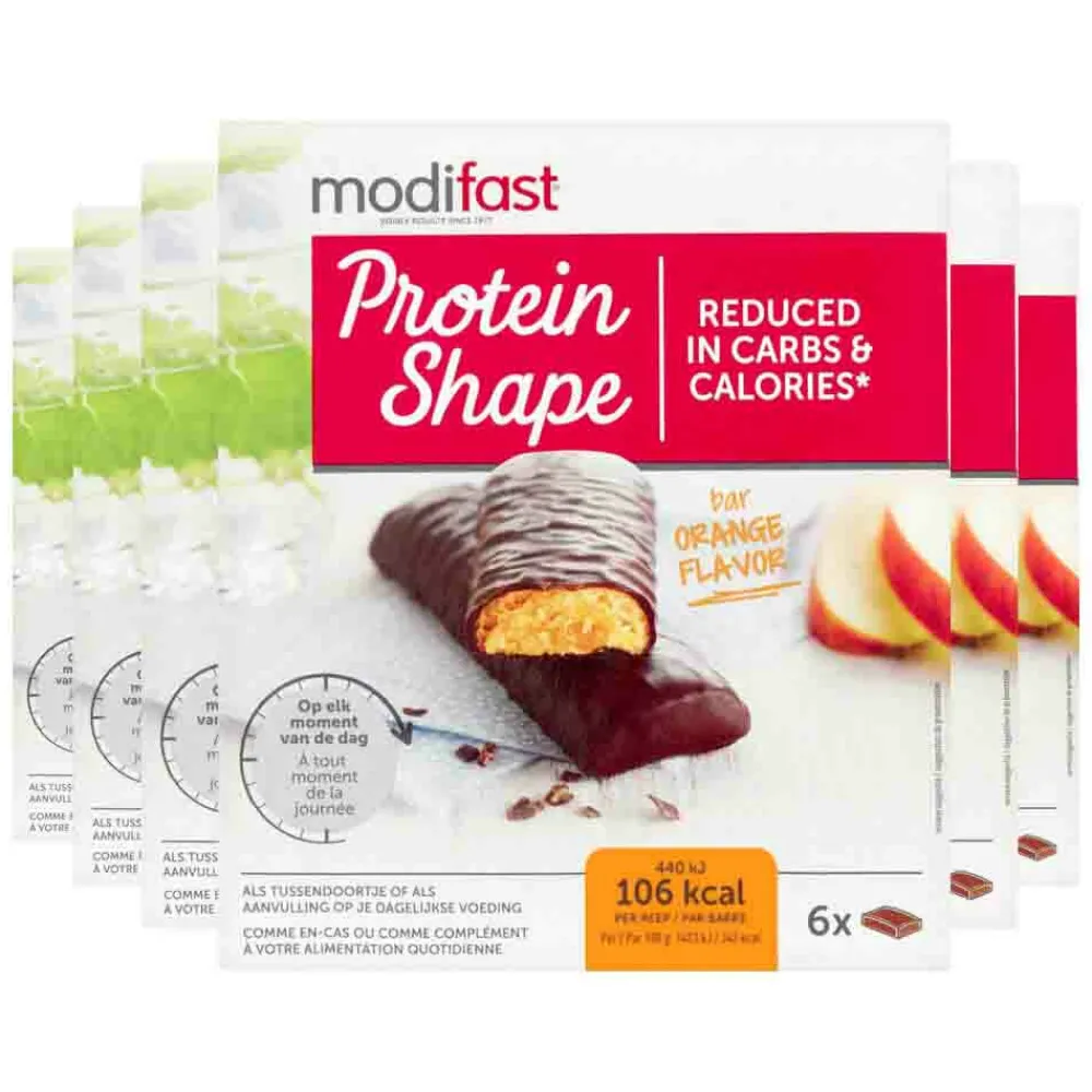 Modifast Protein Shape Reep Pure Chocolade & Sinaasappel is een tussendoortje met een heerlijke, sinaasappelsmaak en een laagje, lekkere, pure chocolade eromheen. Afvallen is één ding. Op gewicht blijven een ander. Modifast Reep kan je daarbij helpen. Iedereen heeft bijvoorbeeld wel eens een moment dat een verantwoorde maaltijd er bij in dreigt te schieten. Dan biedt Modifast Reep een snelle, gezonde en calorie besparende oplossing. Door het hoge gehalte aan eiwitten in Protein Shape, krijg je minder snel honger. Bovendien kun je in het weekend normale, lichte maaltijden eten.