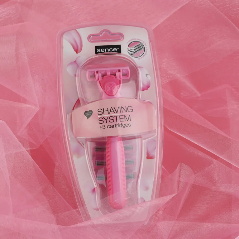 We willen allemaal dat haarverwijdering snel en gemakkelijk verloopt. Sence heeft dit scheersysteem met dat in gedachten ontwikkeld! Dit pakket bevat een scheermeshandvat met comfortabele grip en 3 patronen. Elke patroon heeft 3 roestvrijstalen mesjes, een smeerstrip en een draaibare kop. Voor een gladde scheerbeurt. Kom maar op met die zomerdagen!