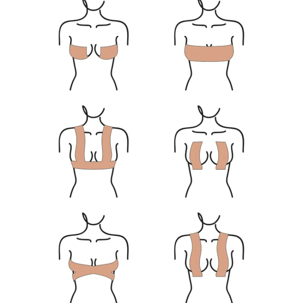 Glam & Go Boob tape geeft borsten een goede ondersteuning in elke outfit zonder een bh te dragen. Doordat de tape bestendig tegen zwemmen en transpireren is, blijft deze de hele dag goed zitten. De tape is op meerdere manieren te dragen. Inclusief nipple covers die ervoor zorgen dat tepels zelfs in hele dunne kleding niet zichtbaar zijn. De tape kan op meerdere manieren gedragen worden, zodat borsten er altijd goed uitzien in elke outfit en er geen bh zichtbaar is. Omdat de Boob Tape bestendig is tegen zwemmen en transpireren, kan het ook onder badpak/bikini zonder vulling worden gebruikt om borsten te ondersteunen.