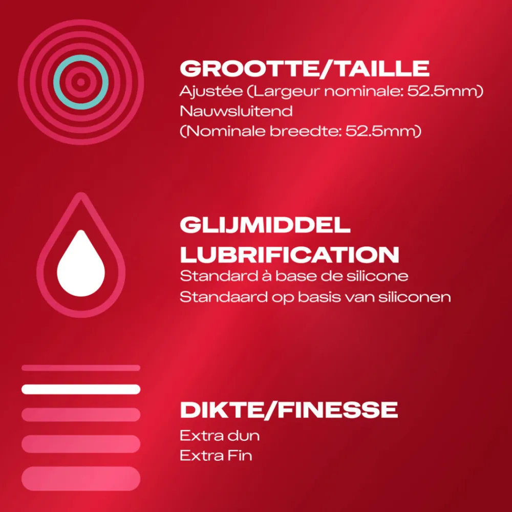 - Natuurlijke Sensatie: De Thin Feel Close Fit condooms zijn dunner dan standaard condooms, waardoor je een meer natuurlijke en intieme ervaring hebt tijdens seks.