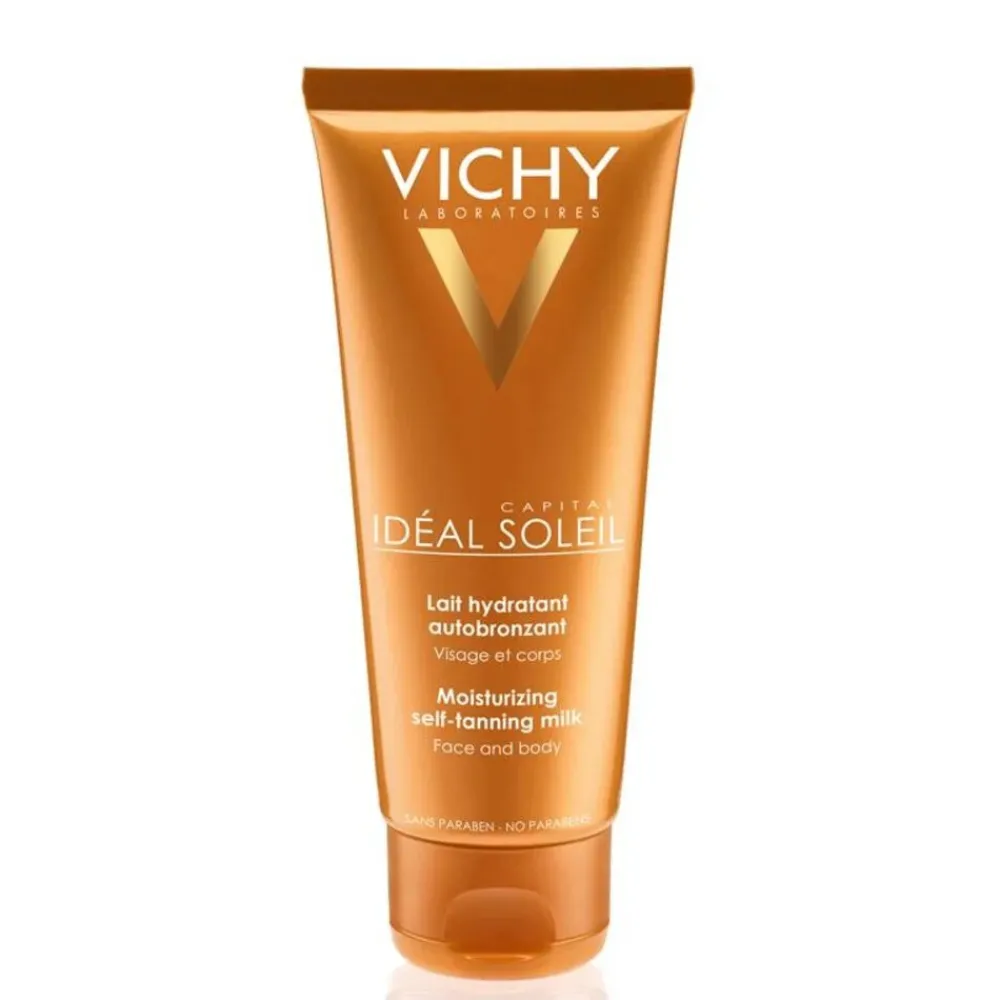 Vichy Ideal Soleil Zelfbruinende Melk voor gezicht en lichaam biedt een natuurlijke, egale en stralende teint zonder blootstelling aan de zon. Deze zelfbruinende melk is verrijkt met hydraterende ingrediënten en vitamine E, die de huid intensief voeden en verzorgen terwijl ze geleidelijk een zomerse gloed opbouwen. De lichte en niet-vette textuur zorgt voor een gelijkmatige applicatie en laat de huid zijdezacht aanvoelen.