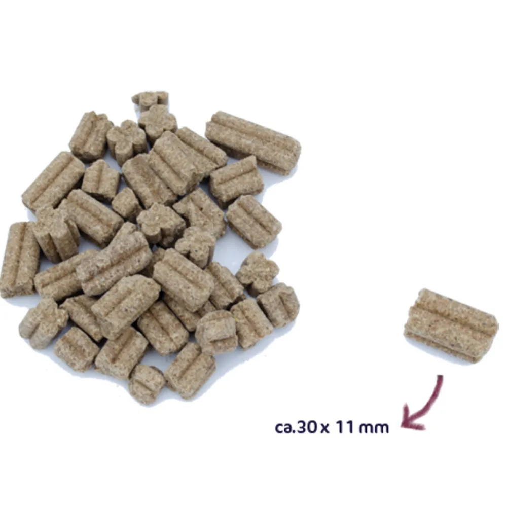 Let op; niet geschikt voor zeer kleine honden vanwege het formaat van de brok.