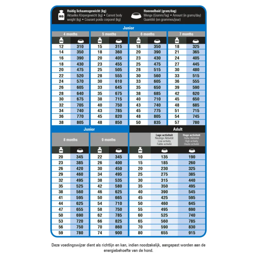 - Hoog vetgehalte Bevat een verhoogd vetgehalte om aan de behoefte van jonge honden te voldoen. L-carnitine bevordert daarnaast een optimale vetverbranding.
