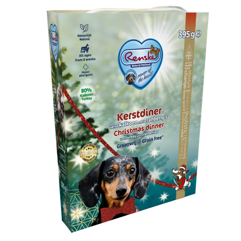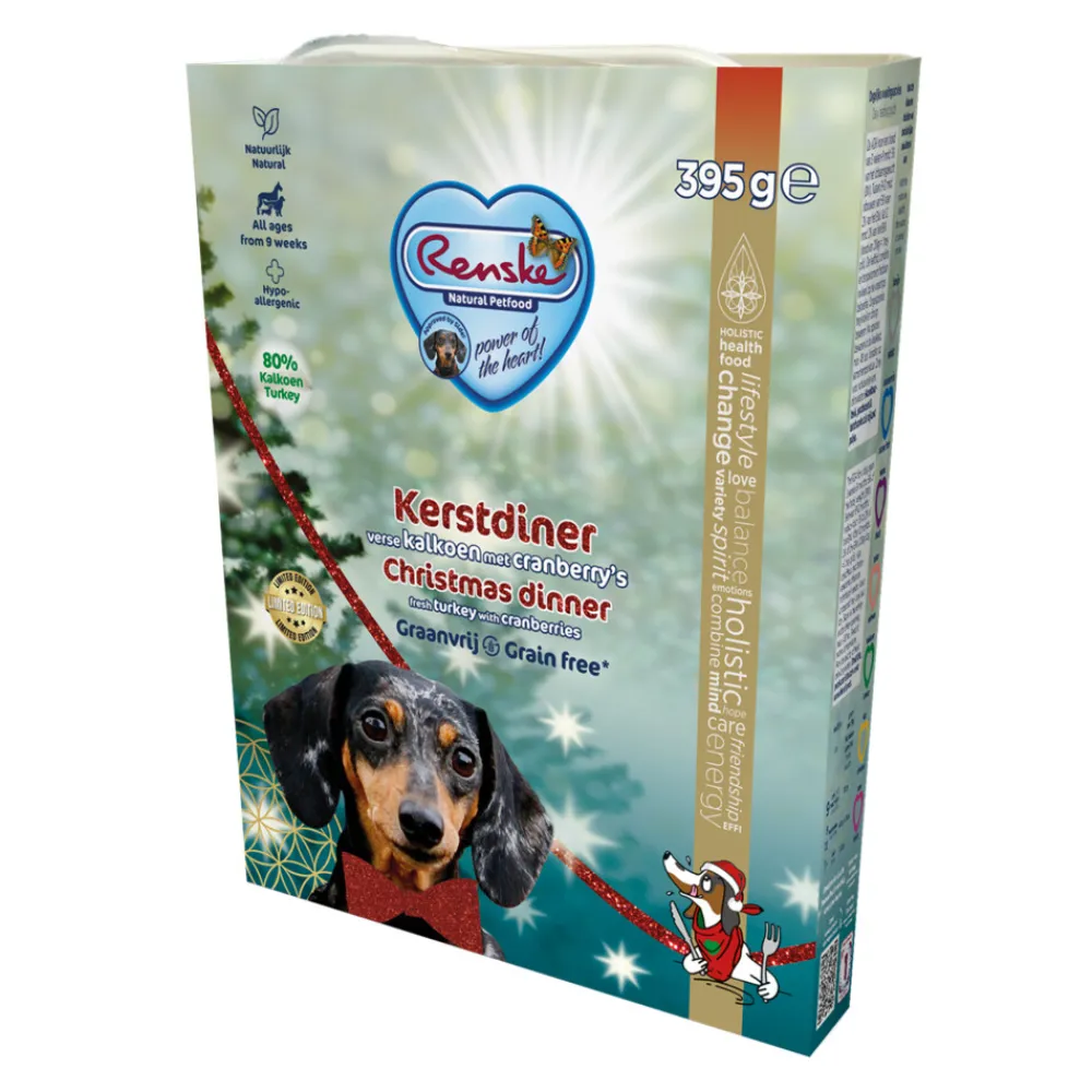 Renske Vers Gestoomd Complete Menu Kerstdiner Kalkoen – Cranberry is een vlees maaltijd voor jonge en volwassen honden van alle rassen vanaf 9 weken. De feestelijke voeding bevat minimaal 80% kalkoen en is aangevuld met cranberry’s, wat pompoen, duurzaam geteelde moestuin groenten en kruiden.. De zuivere, verse en natuurlijke ingrediënten zijn licht gestoomd en vacuüm geseald voor het behoud van de noodzakelijke voedingstoffen. Omdat het product gestoomd is, is het product 100% veilig en ideaal voor onderweg of op vakantie.