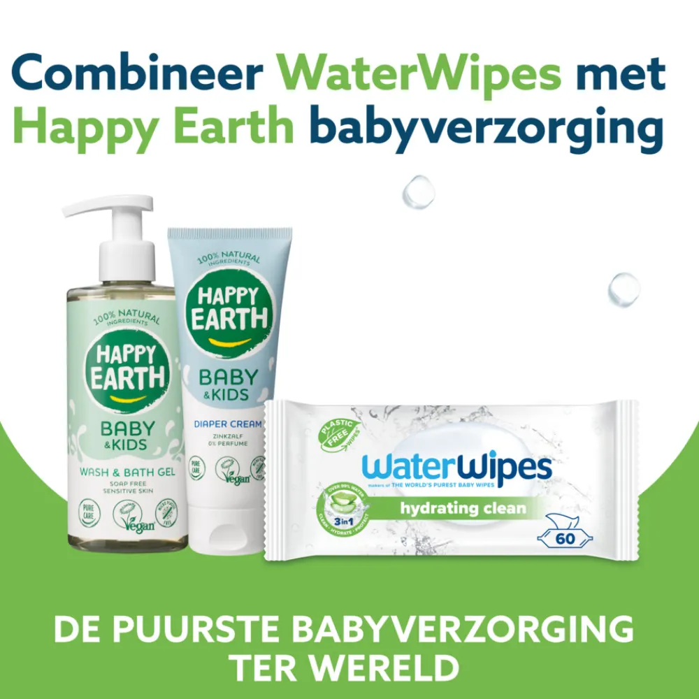 WaterWipes Billendoekjes Hydratingbieden de puurste verzorging voor de gevoelige huid. Ze bevatten meer dan 99% gezuiverd water en natuurlijke aloë vera. Jij kiest voor een milde, hydraterende én beschermende reiniging – zonder compromissen. Deze doekjes zijn plasticvrij, biologisch afbreekbaar en geschikt voor jong en oud. Gebruik ze vanaf de geboorte, thuis of onderweg. Dankzij de plantaardige ingrediënten en dermatologische testen zijn ze ideaal bij eczeem en allergieën*. WaterWipes combineert zuiverheid met zorg, elke dag opnieuw.