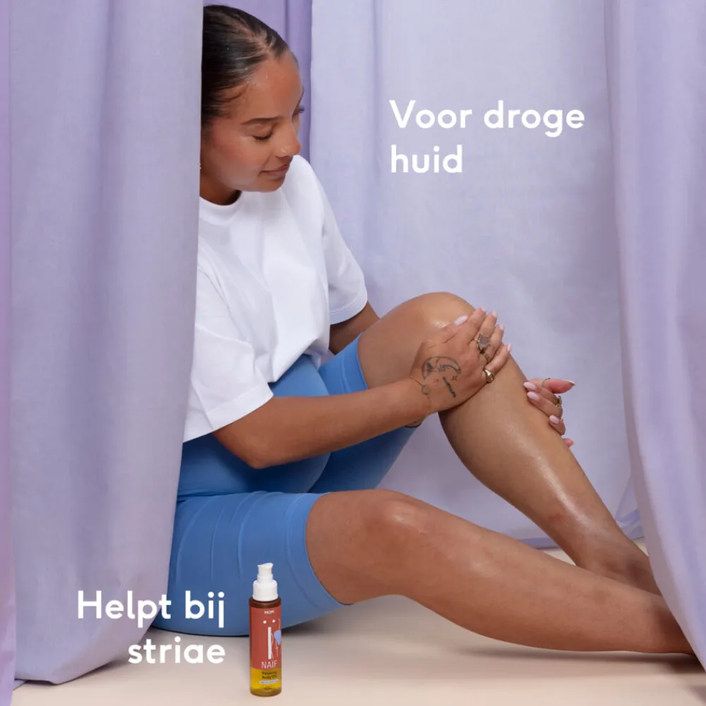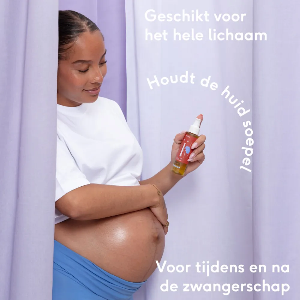 Naïf Ontspannende Lichaamsolie verzorgt en beschermt je huid tijdens en na de zwangerschap. Terwijl je lichaam verandert, kan je huid te maken krijgen met jeuk, striae, pigmentatie en droogheid. Deze olie bevat milde ingrediënten van natuurlijke oorsprong, zoals jojoba-olie en squalane, die je huid soepel en gehydrateerd houden. De bloemige geur van lavendel brengt je helemaal tot rust en bevordert de ontspanning van je lichaam. Geniet van een moment van rust en verzorging met onze lichaamsolie tijdens je zwangerschap.