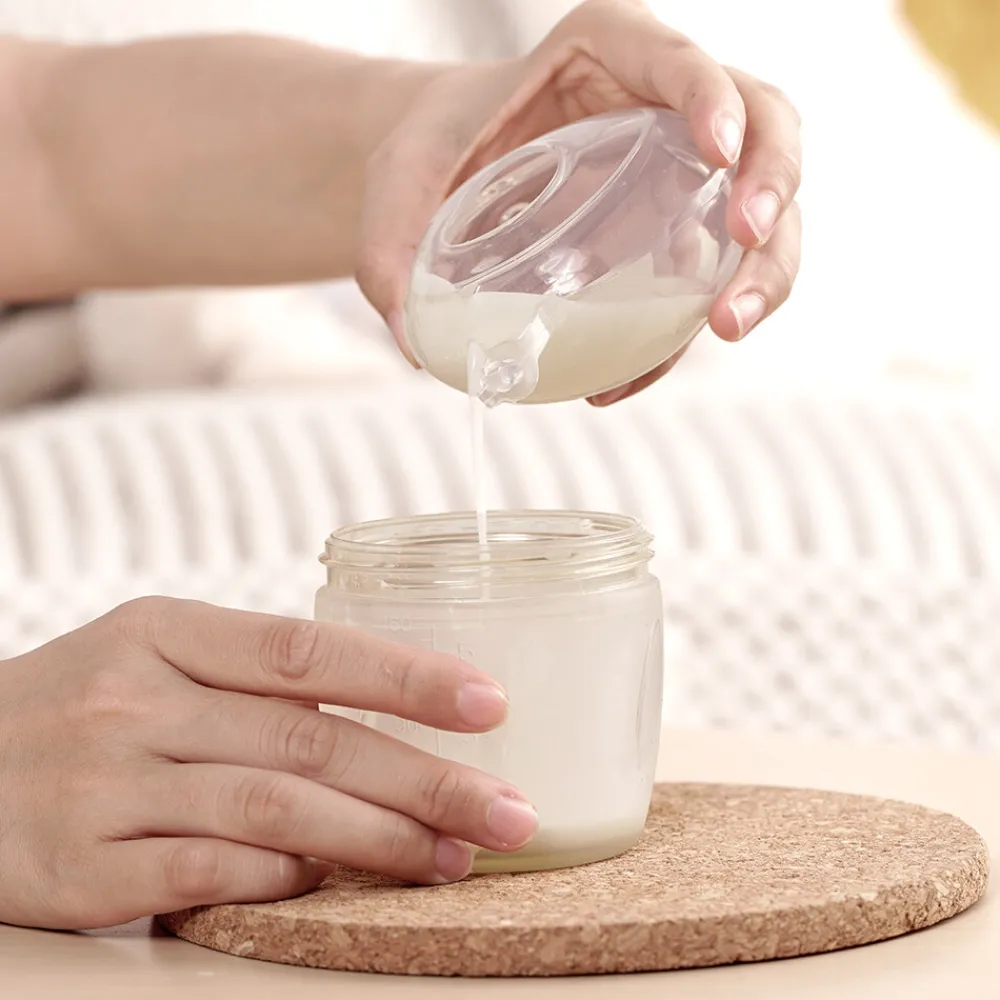 - Open de dop bovenop en giet de melk in een recipiënt (fles, zakje, etc).