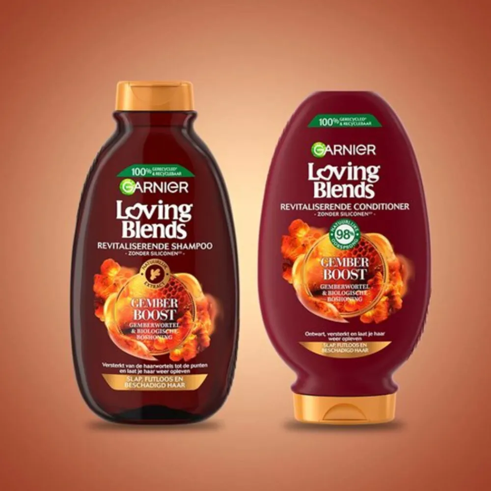 Loving Blends Gember Boost Conditioner van 98% natuurlijke oorsprong is een revitaliserende conditioner die slap, futloos en beschadigd haar ontwart, versterkt en weer laat opleven. Je haar is sterker, gezonder en vol leven en energie. Zelfs dun haar blijft licht & luchtig. Zonder siliconen voor een natuurlijk gevoel. Geniet van de heerlijke geur, en gun jezelf een verwenmomentje. Breng de conditioner aan op de gehele lengte van je gewassen haar, masseer zachtjes in en spoel het uit voor een optimaal eindresultaat.