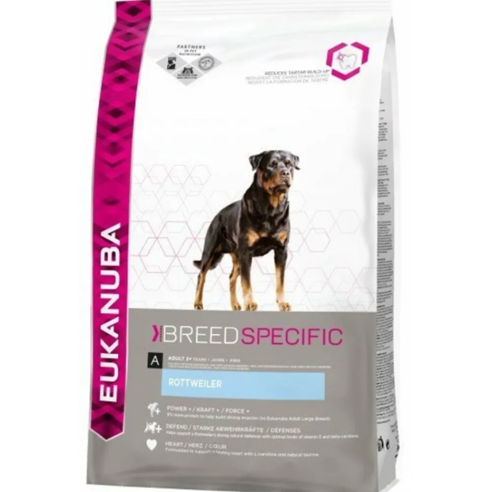 Eukanuba’s rasspecifieke voeding voor rottweilers (ook ideaal voor bordeauxdogs, cane corso’s, Argentijnse dogs en Rhodesian ridgebacks) is zorgvuldig samengesteld om jouw hond te helpen een lang en gezond leven te leiden.