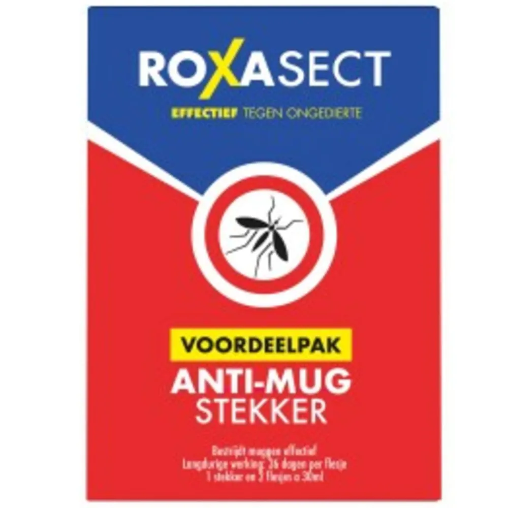 – De stekker is niet geschikt voor ruimtes met airconditioning of veel beluchting. Samenstelling: Prallethrin (6,7 g/L (0,87% ww). Inhoud: 1x flesje 360 uur / 30 m2. De Roxasect Anti-Mug stekker is ook verkrijgbaar in: