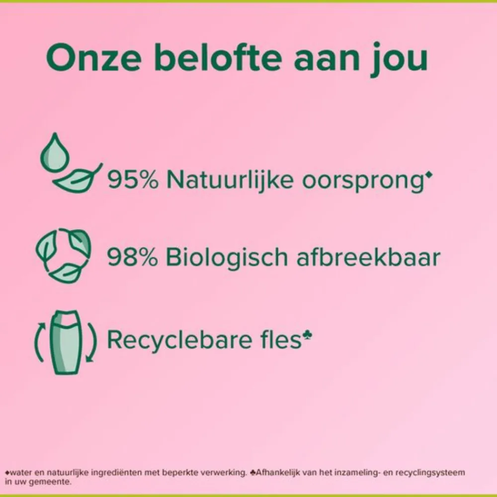 Voel de liefde en verbeter je humeur met Palmolive Aroma Essence Alluring Love douchegel. Deze betoverende douchegel is ontworpen met een geurtechnologie die een goed humeur bevordert en bevat tonen van zoete rozen en pioenrozen die je een geliefd gevoel geven. Deze vegan douchegel is gemaakt met ingrediënten van 95% natuurlijke oorsprong* en heeft een formule die voor 95% biologisch afbreekbaar is. De fles bestaat voor 30% uit gerecycled plastic en is volledig recyclebaar. Geniet van liefde en affectie met de heerlijke geuren van Palmolive Aroma Essence.