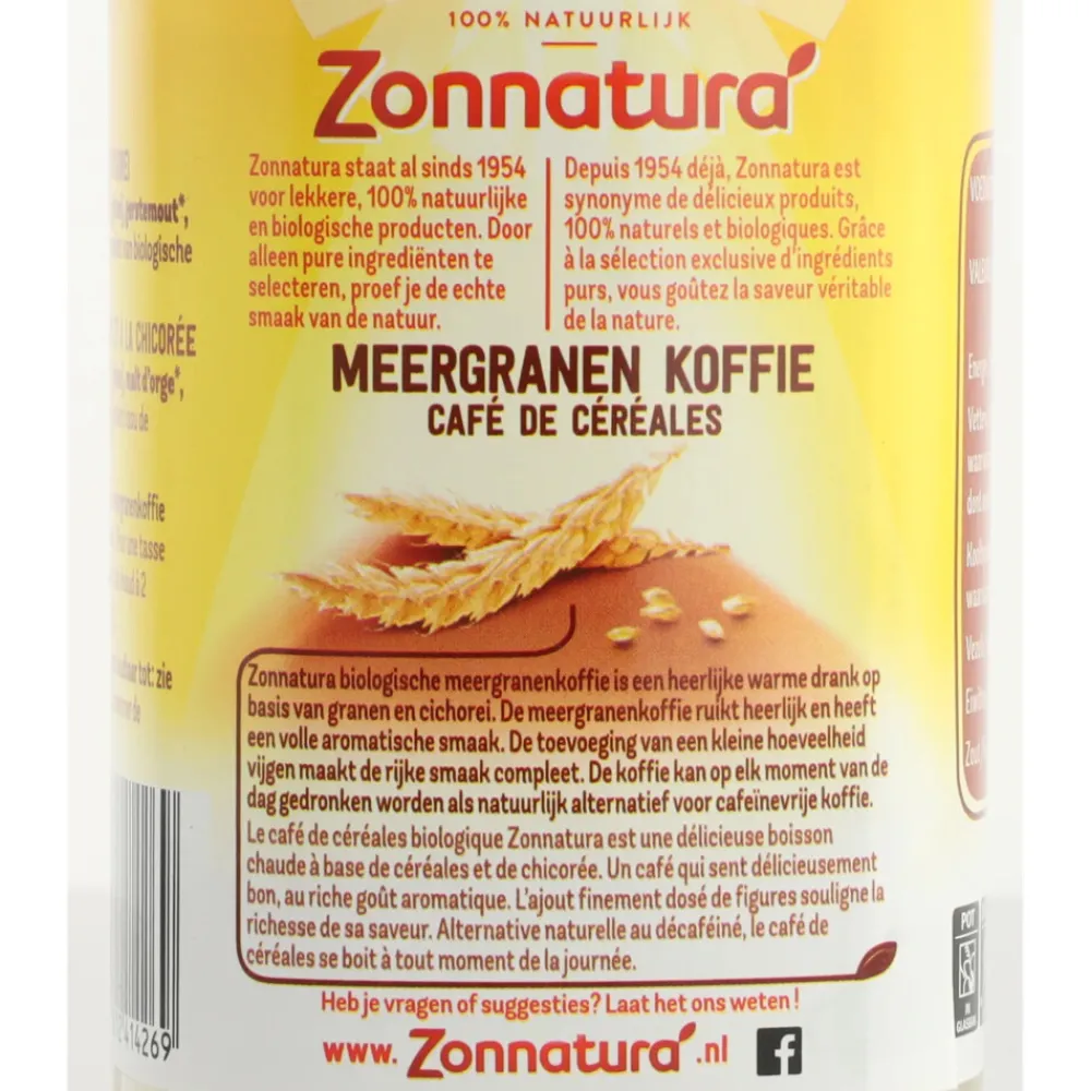 Zonnatura staat al 50 jaar voor lekkere, verantwoorde, 100% natuurlijke producten. Neem nou Zonnatura Meergranenkoffie. Dit is een verrassende drank op basis van granen en cichorei met een heerlijke geur en een volle, aromatische smaak. De granen worden zo min mogelijk bewerkt, waardoor de goede eigenschappen van de natuur behouden blijven. Het is rijk aan vezels en van nature cafeïnevrij. Zonnatura Meergranenkoffie, van nature lekkerder.