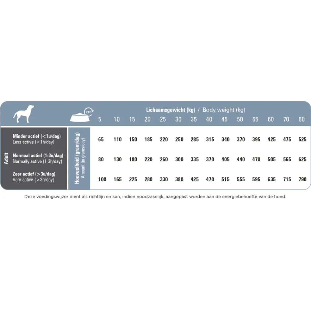 - Ingrediënten als zalmolie, glucosamine en chondroïtine ondersteunen de gewrichten van de oudere hond.