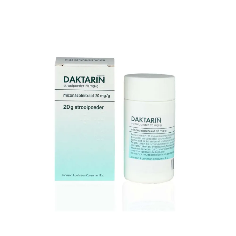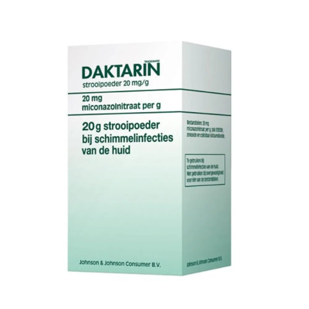 Daktarin-strooipoeder wordt gebruikt bij een schimmelinfectie van de huid. Dactarin Strooipoeder is bedoeld om te gebruiken naast Daktarin Crème, Daktarin Nagellak of een andere vorm van behandeling. Daktarin-strooipoeder wordt enerzijds gebruikt als nabehandeling van bijvoorbeeld kloven en anderzijds om sokken, kousen en schoenen te ontsmetten als je een schimmelinfectie aan de voet hebt. De werkzame stof van Daktarine Strooipoeder is het schimmeldodende middel miconazolenitraat.