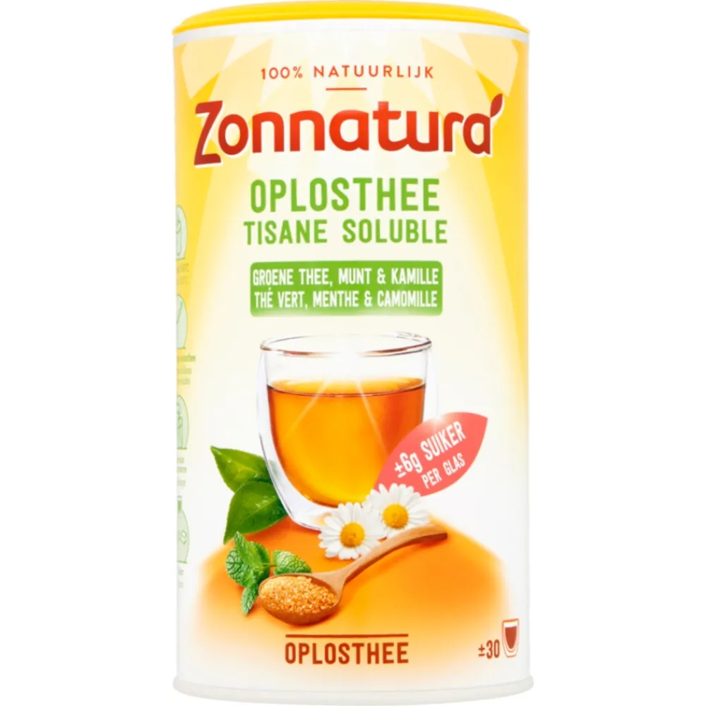 Zonnatura Groene & kamille oplosthee bevat een 100% natuurlijk kruidenextract op basis van groene thee, kamille & pepermunt. Deze melange geeft de oplosthee een heerlijk zacht frisse smaak. De druivensuiker en honing maken de thee op een natuurlijke wijze lekker zoet. Lekker voor elk moment van de dag.