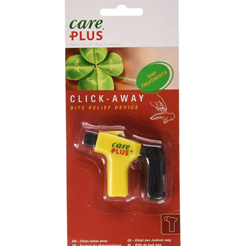 Care Plus Click Away Bite Relief is een revolutionaire behandelingsmethode voor insectenbeten. Helpt tegen zwelling, roodheid, irritatie en jeuk na een insectensteek of kwallenbeet. Dit handige apparaatje kan jeuk en zwelling na een muggenbeet of een wespen- of bijensteek verminderen. Al binnen enkele minuten. De Click-Away maakt crèmes en chemicaliën overbodig om van jeuk af te komen. Het systeem gebruikt in plaats daarvan een compleet pijnvrije schok met hoog voltage en lage ampère. Door de puls vermindert de jeuk binnen een paar minuten. Een paar klikken en de jeuk verdwijnt.