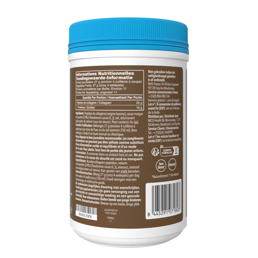 Vital Proteins Collagen Peptides Cacaosmaak is een collageen peptiden met cacaosmaak. De collageen peptiden laten zich goed mengen met water of melk, warm of koud, en kunnen op elk moment van de dag kunnen worden ingenomen.