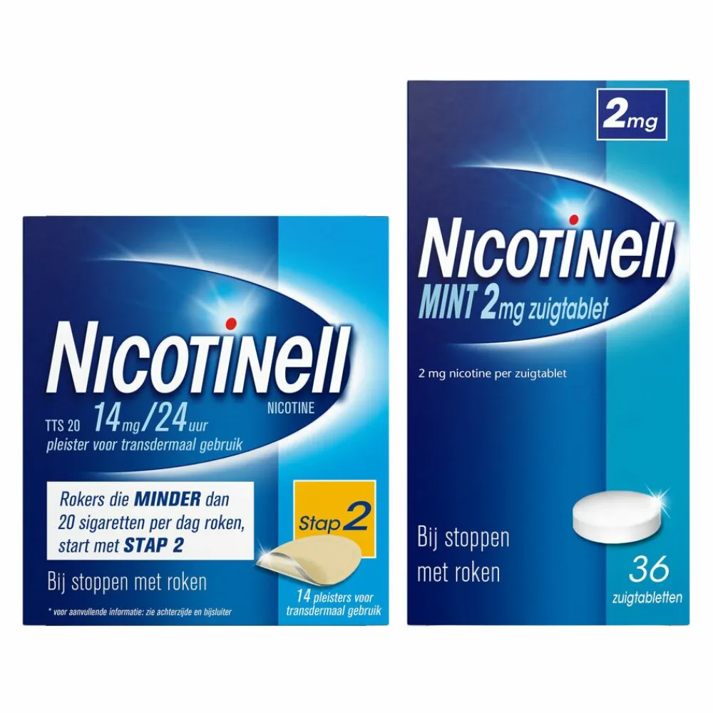 Nicotinell Combinatie therapie: Pleister 14 mg 14 st + Zuigtablet Mint 2 mg 36 st Pakket