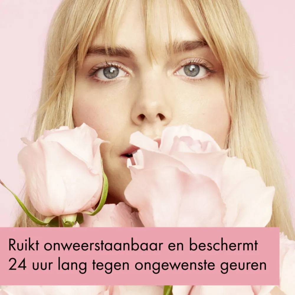 De Pampering Eco-spray beschermt 24 uur lang tegen ongewenste geuren en is verrijkt met rozenblaadjes en muru muru butter voor een onweerstaanbare geur.
