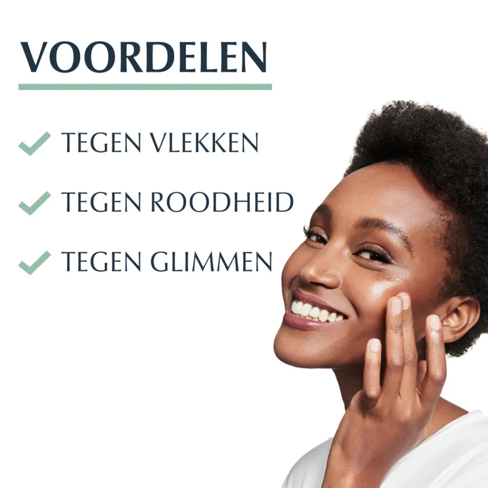 - Anti-vlekken: Gepatenteerd Thiamidol* vermindert hardnekkige vlekken na acne (post-inflammatoire hyperpigmentatie) en voorkomt terugkeer ervan