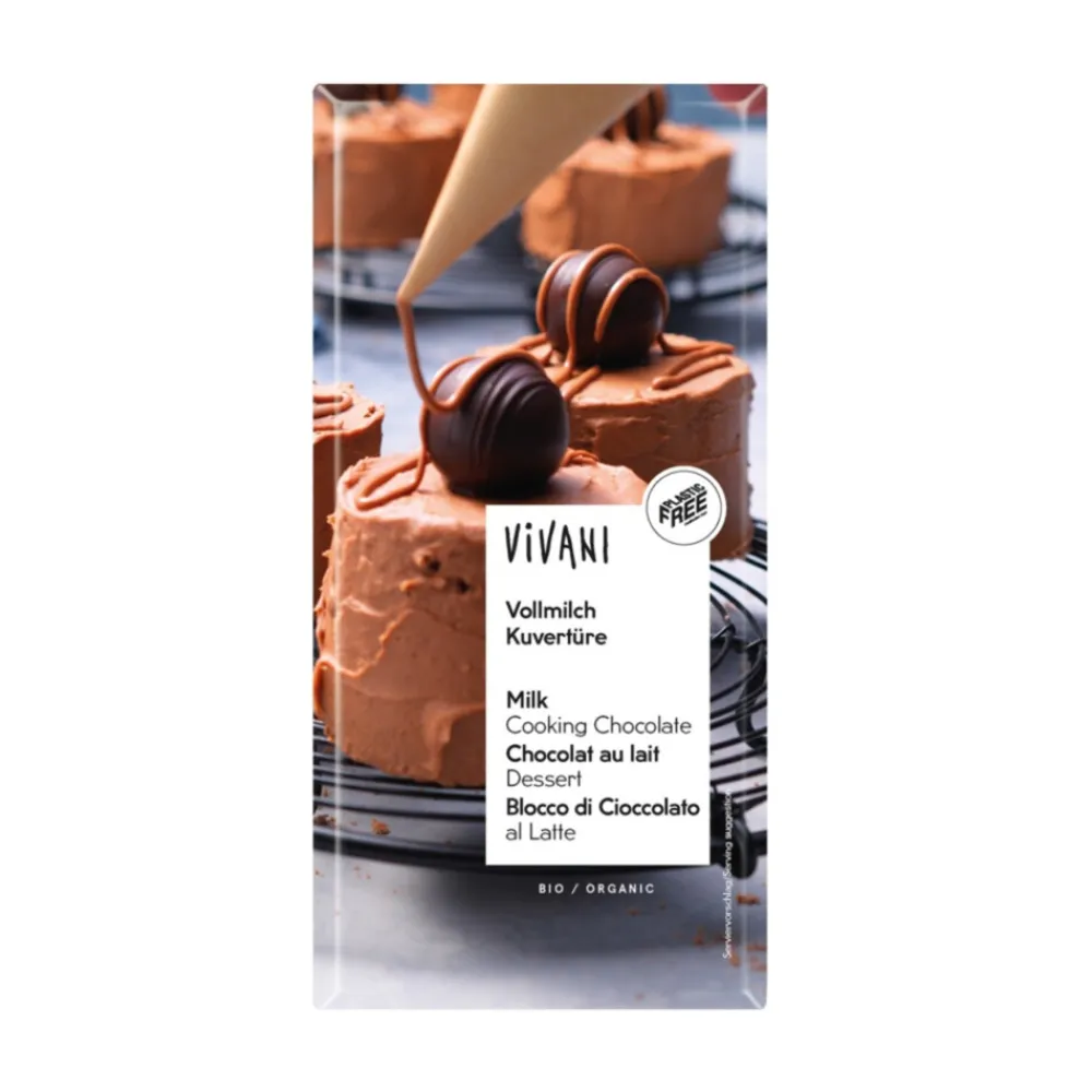 Ruwe rietsuiker*, cacaoboter*, VOLLE MELKPOEDER* 18%, cacaomassa*, emulgator: lecithine (zonnebloem*), bourbon vanille extract*. Cacao: ten minste 35%. *Van biologische landbouw (DE-OKO-013)