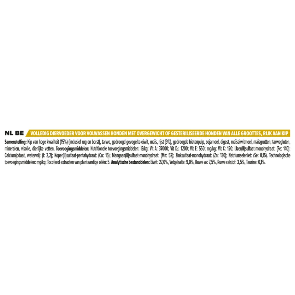 Pro Plan Adult All Sizes Light Sterilised Kip (voorheen OptiWeight) is speciaal samengesteld voor volwassen honden die de neiging hebben om aan te komen en om honden met overgewicht te helpen afvallen. De voordelen van Pro Plan Adult All Sizes Light Sterilised: