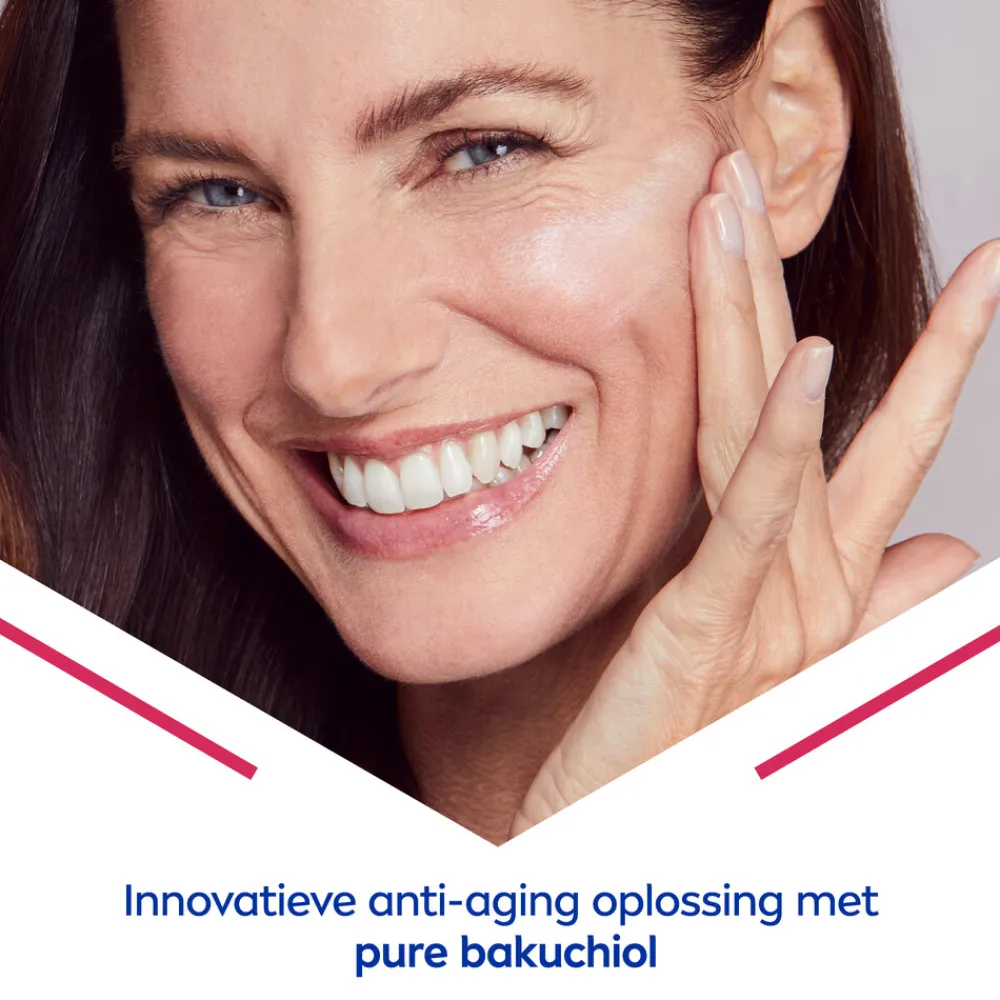 NIVEA Cellular Expert Lift Anti-Age Nachtcrème 50ml bevat een combinatie van krachtige anti-age ingrediënten die diep in de cel werken. Een jonger uitziende huid is een zichtbare weerspiegeling van cellulaire activiteiten. De nachtcrème bevat pure Bakuchiol en Micro & Macro Hyaluronzuur. Bakuchiol is een ingrediënt van plantaardige oorsprong, afkomstig van de Babchiplant (Psoralea corylifolia). Het ondersteunt de collageenproductie van de cel, vermindert diepe rimpels, verstevigt de huid en laat de huid glad aanvoelen. De twee anti-age ingrediënten, die er om bekend staan dat ze huid hydrateren, glad maken en helpen om rimpels zichtbaar te verminderen. Macro Hyaluronzuur helpt het huidoppervlak intens te hydrateren en glad te maken, door tot 1000 keer het gewicht in water vast te houden. Micro Hyaluronzuur dringt nog dieper door in de huid, waardoor een rimpels worden verminderd. De nachtcrème ondersteunt het herstellend vermogen tijdens de nacht.