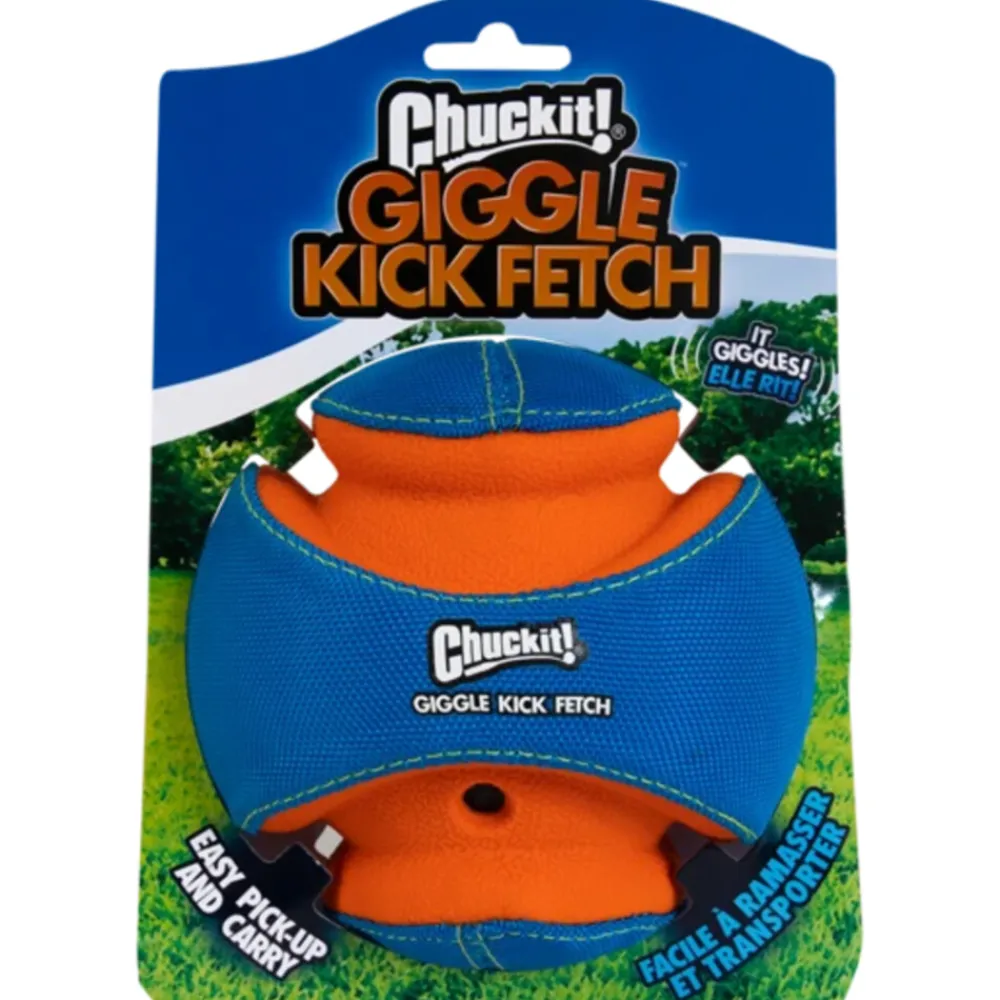 Deze grappige apporteerbal zorgt voor uren speelplezier voor hond en baasje! Met deze grappige bal wordt gooien, apporteren of spelen extra leuk. De bal giechelt en lacht bij elke beweging en is gemaakt van een duurzame schuimkern en een buitenkant van polyester en stevig canvas. De rubberen bijtzones is de Giggle Kick Fetch zorgen er voor dat de bal gemakkelijk beet te pakken is door de hond. Extra leuk zijn natuurlijk de twee ‘gigglers’, waardoor de natuurlijke interesse van de hond in de bal snel gewekt is!