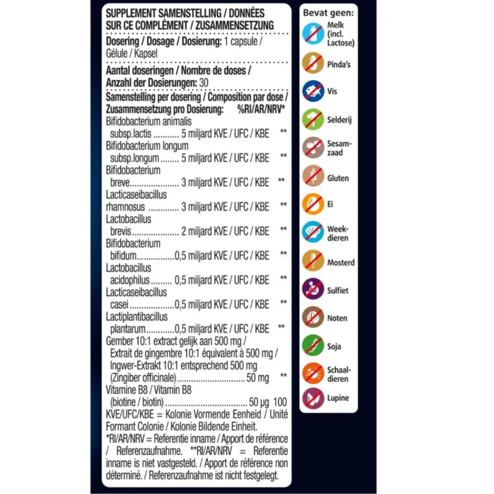 Lactiplantibacillus plantarum,Maltodextrine, Gember,Vitamine B8 (biotine).