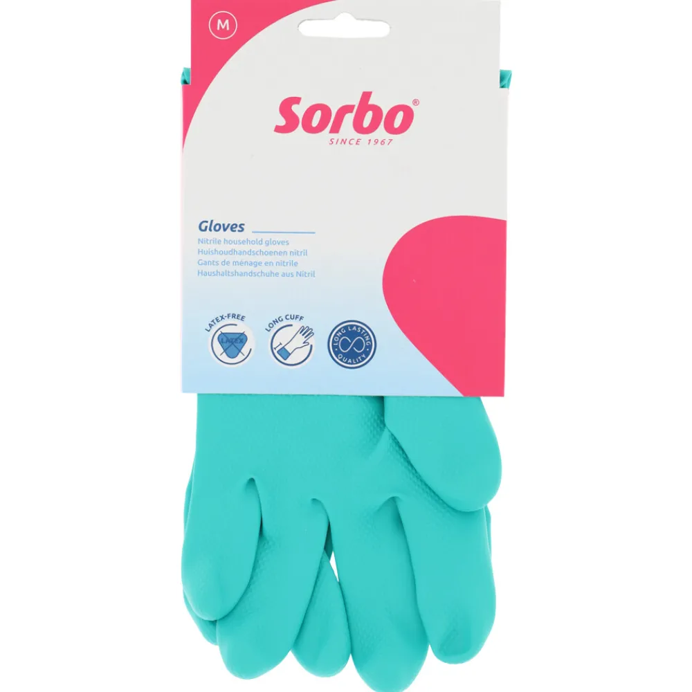 Deze Sorbo huishoudhandschoenen beschermen handen bij alle huishoudelijke taken. De handschoenen zijn gemaakt van 100% synthetisch nitril en zijn geheel latexvrij. Dankzij deze samenstelling zijn de huishoudhandschoenen extra sterk en gaan minder snel kapot. Door het extra lange manchet biedt deze latexvrije handschoen maximale bescherming.