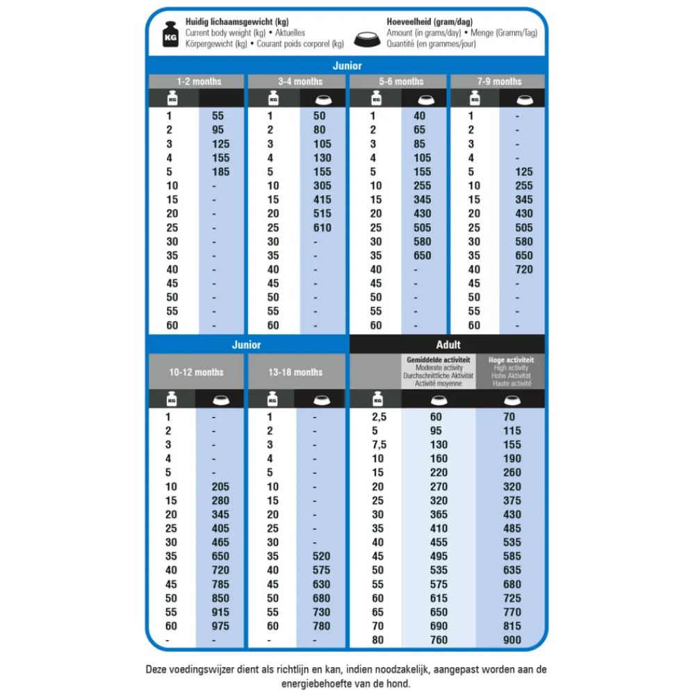 Bevat een verhoogd vetgehalte om aan de behoefte van actieve honden te voldoen. L-carnitine bevordert daarnaast een optimale vetverbranding. - Glanzende vacht