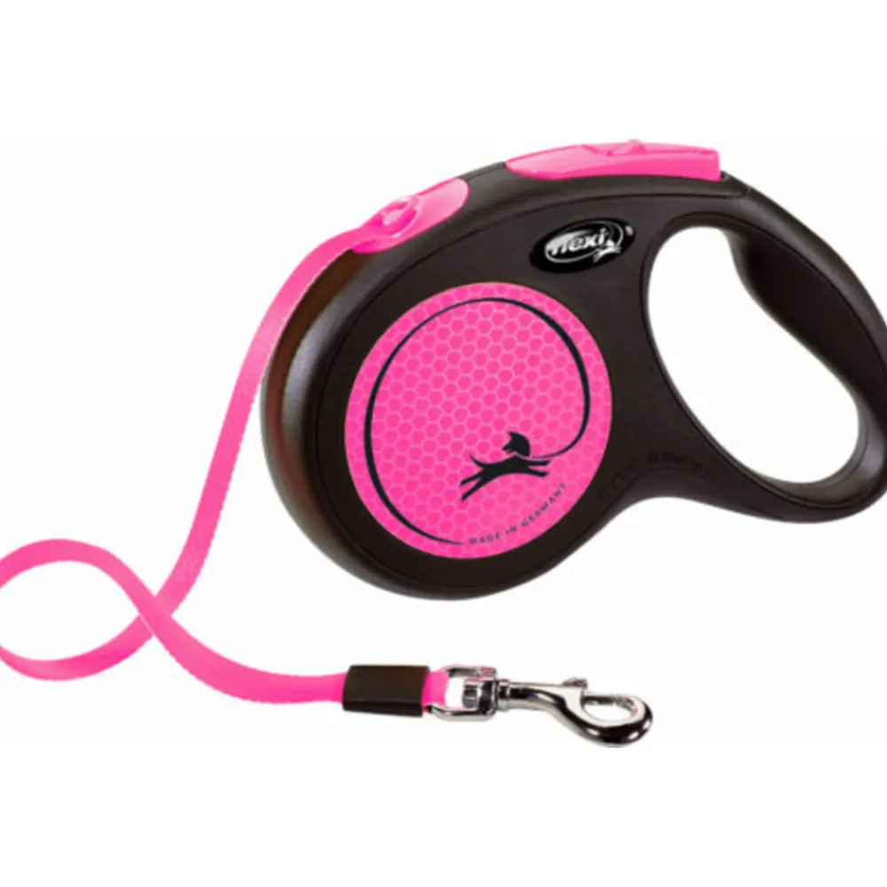 Ontdek het ultieme gemak en de veiligheid tijdens het uitlaten van je hond met de Flexi New Neon Tape rollijn. Het stijlvolle design en de ergonomische handgreep zorgen voor een comfortabele grip. Dankzij het innovatieve remsysteem pas je de lijn moeiteloos aan naar jouw gewenste lengte. In tegenstelling tot de New Classic, valt de New Neon extra goed op in het donker, met neon gekleurd, sterk tape en sterk reflecterende zijkanten.