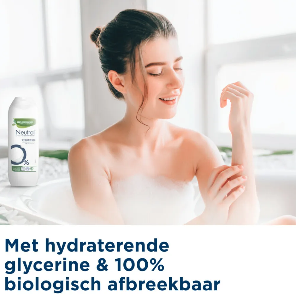 Neutral 0% Parfumvrije Showergel met 0% parfum en 0% kleurstof is speciaal ontwikkeld voor de gevoelige huid en bevat 100% biologisch afbreekbare ingrediënten.