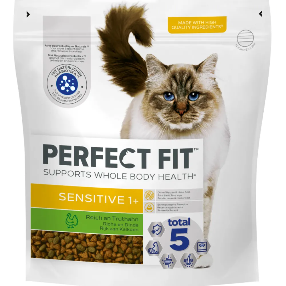 Dit voer is ideaal voor katten die gevoelig kunnen reageren op bepaalde voeding. Om de kat toch zorgeloos te laten ravotten, jagen en spelen, is Perfect Fit Sensitive ontwikkeld deze voeding is rijk aan kalkoen.