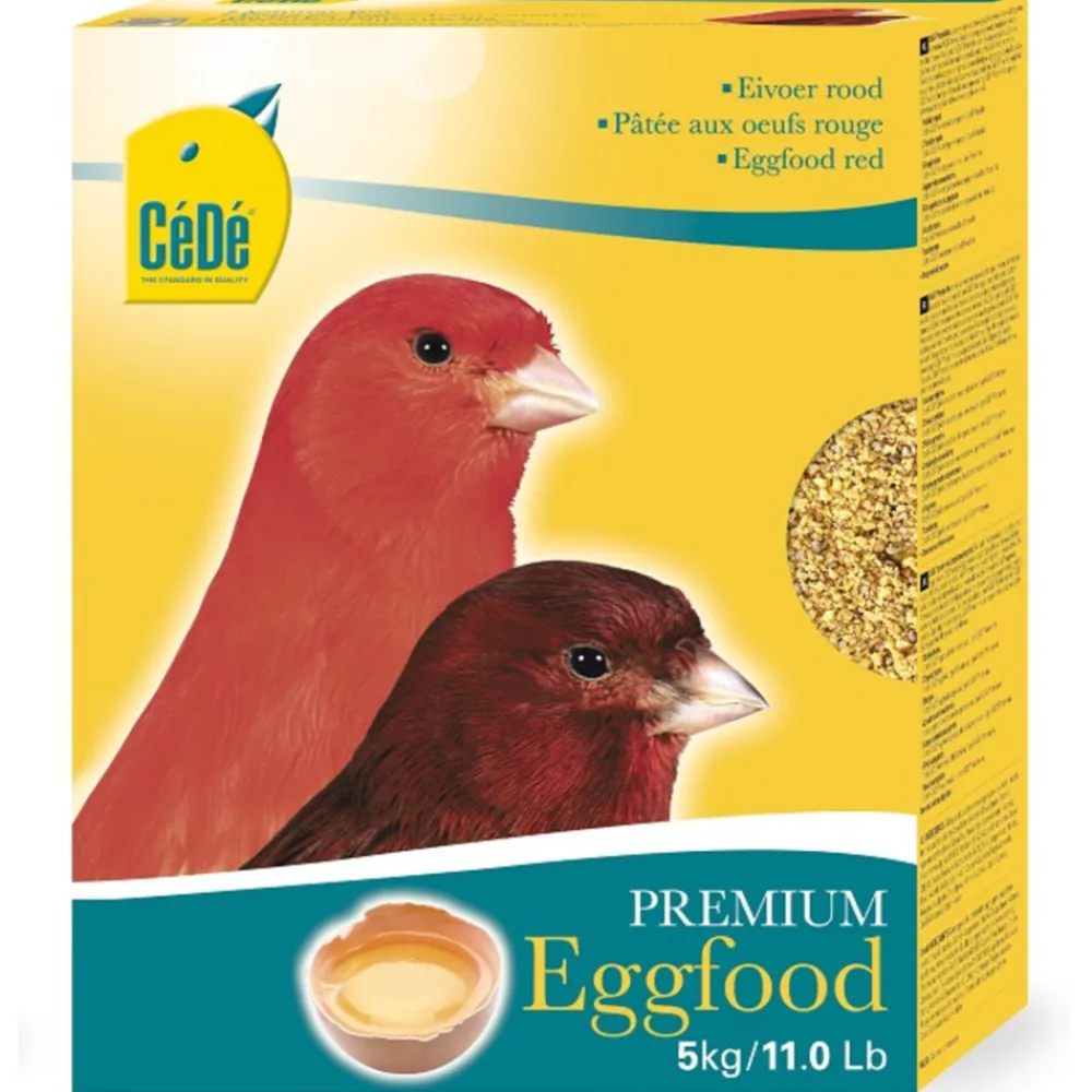 CéDé Eivoer rood is een aanvullend voer voor kleurkanaries en inlandse vogels, die de roodfactor bezitten. Het verwerken van volledige eieren maakt CéDé® uniek! Ei-eiwit is voor vogels een goed opneembare en de best benutbare bron van dierlijk eiwit. CéDé® eivoer bevat hoogwaardige eiwitten, zowel dierlijke als plantaardige, alle noodzakelijke vitaminen, aminozuren, mineralen en sporenelementen voor een succesvolle kweek.