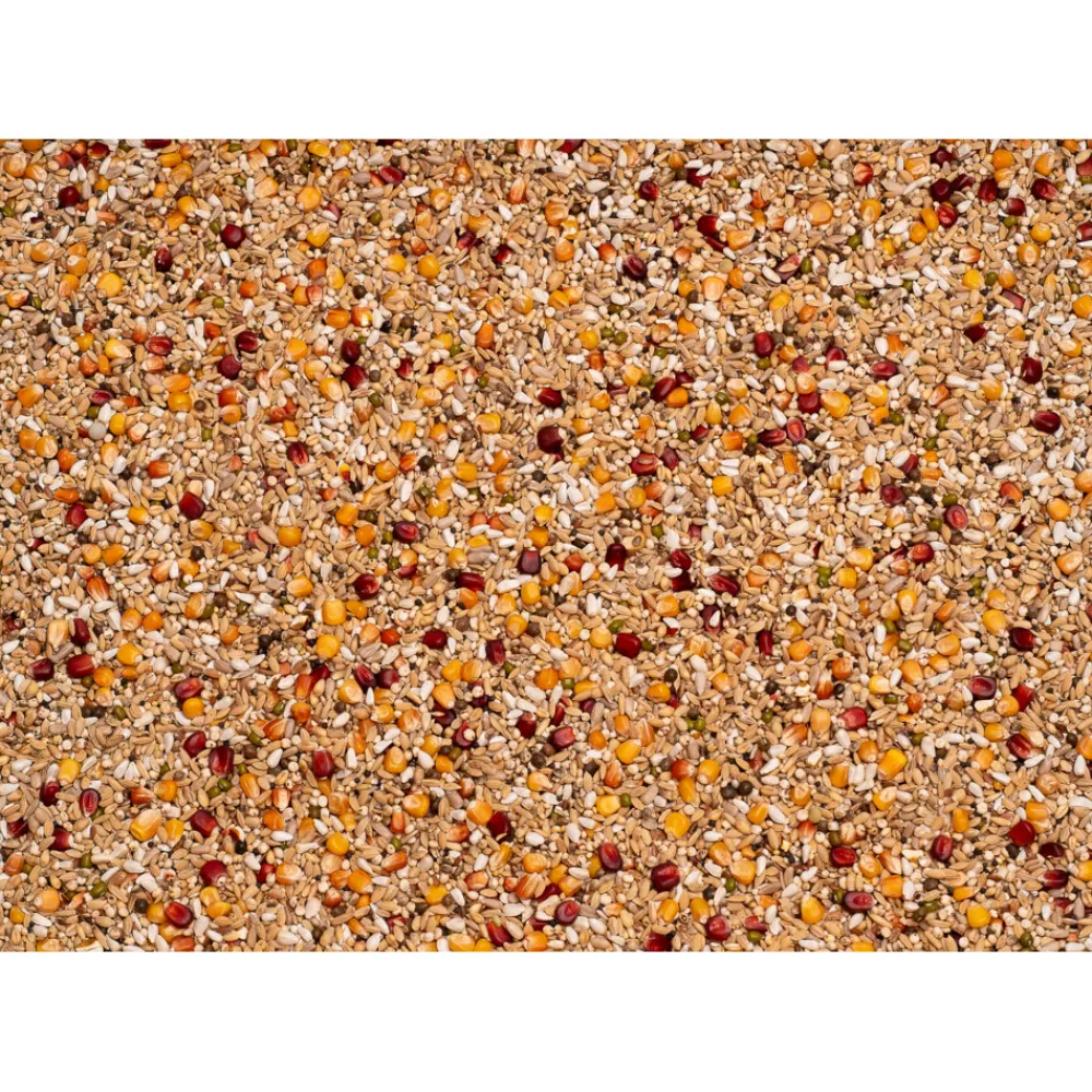 - Principe paddy-dari-cardy aangevuld met 4 verschillende maïssoorten, vetrijke zaden en granen.