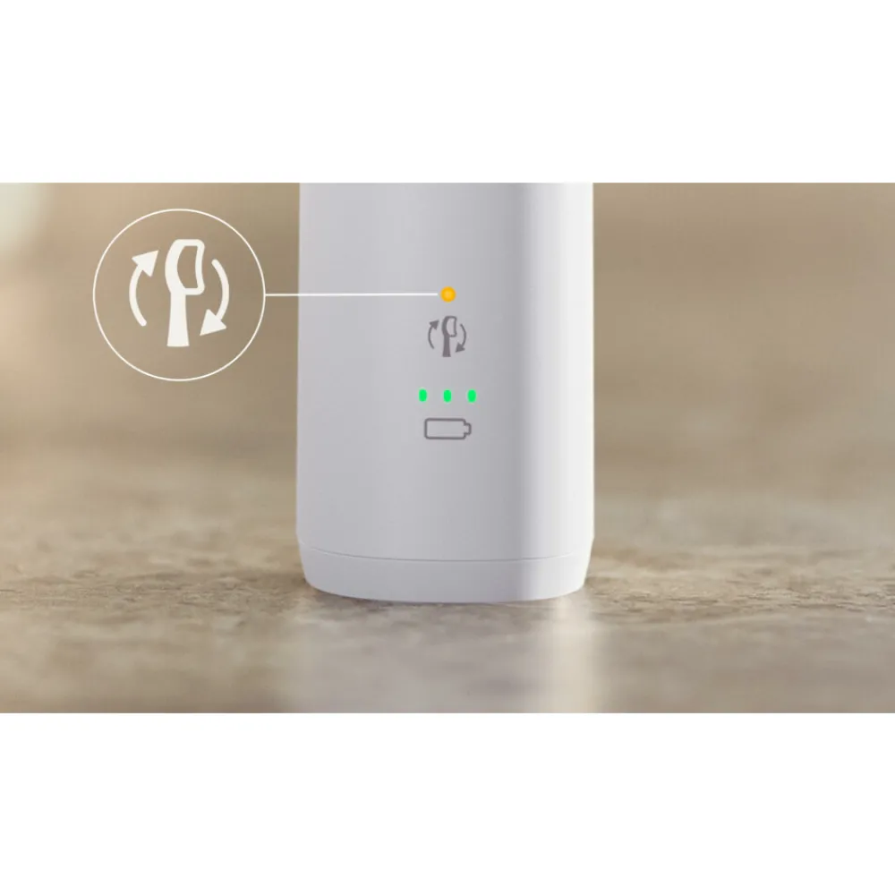 De Philips Sonicare 5300 beschikt over de nieuwe generatie Sonicare-technologie, 2 intensiteitsniveaus en geeft een drukwaarschuwing als u te hard poetst. Met opzetborstel voor wittere tanden.