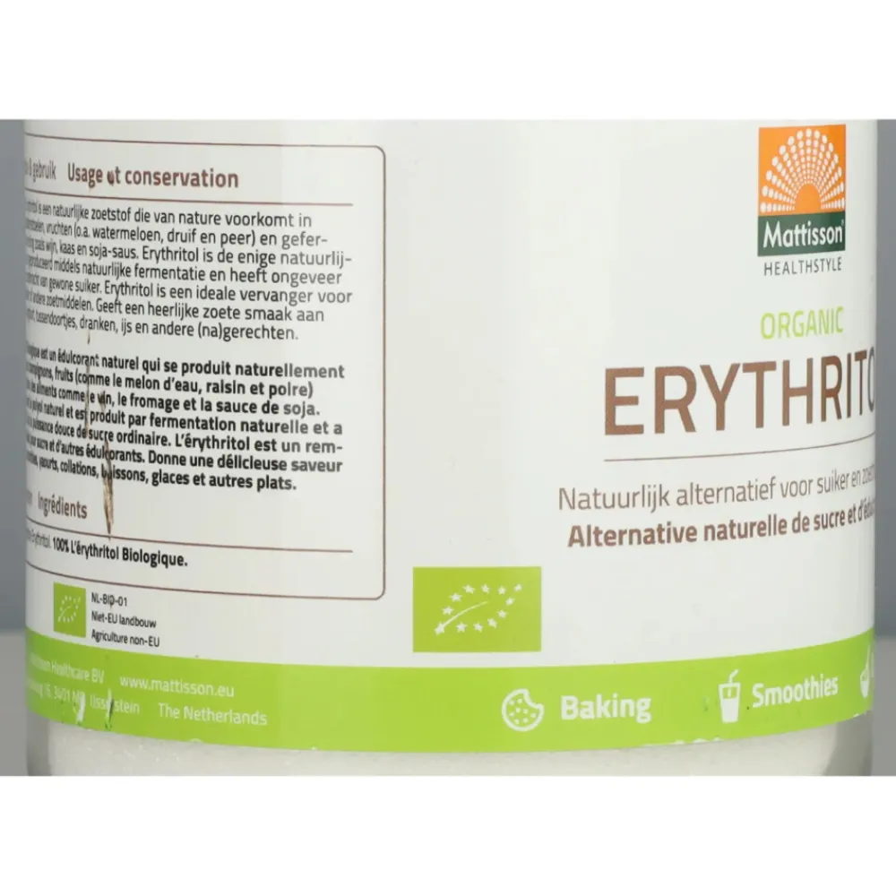Mattisson Erythritol is een ideale vervanger van riet-, bietsuiker of andere zoetmiddelen. Geeft een heerlijke zoete smaak aan smoothies, yoghurt, tussendoortjes, dranken, ijs en andere (na)gerechten.